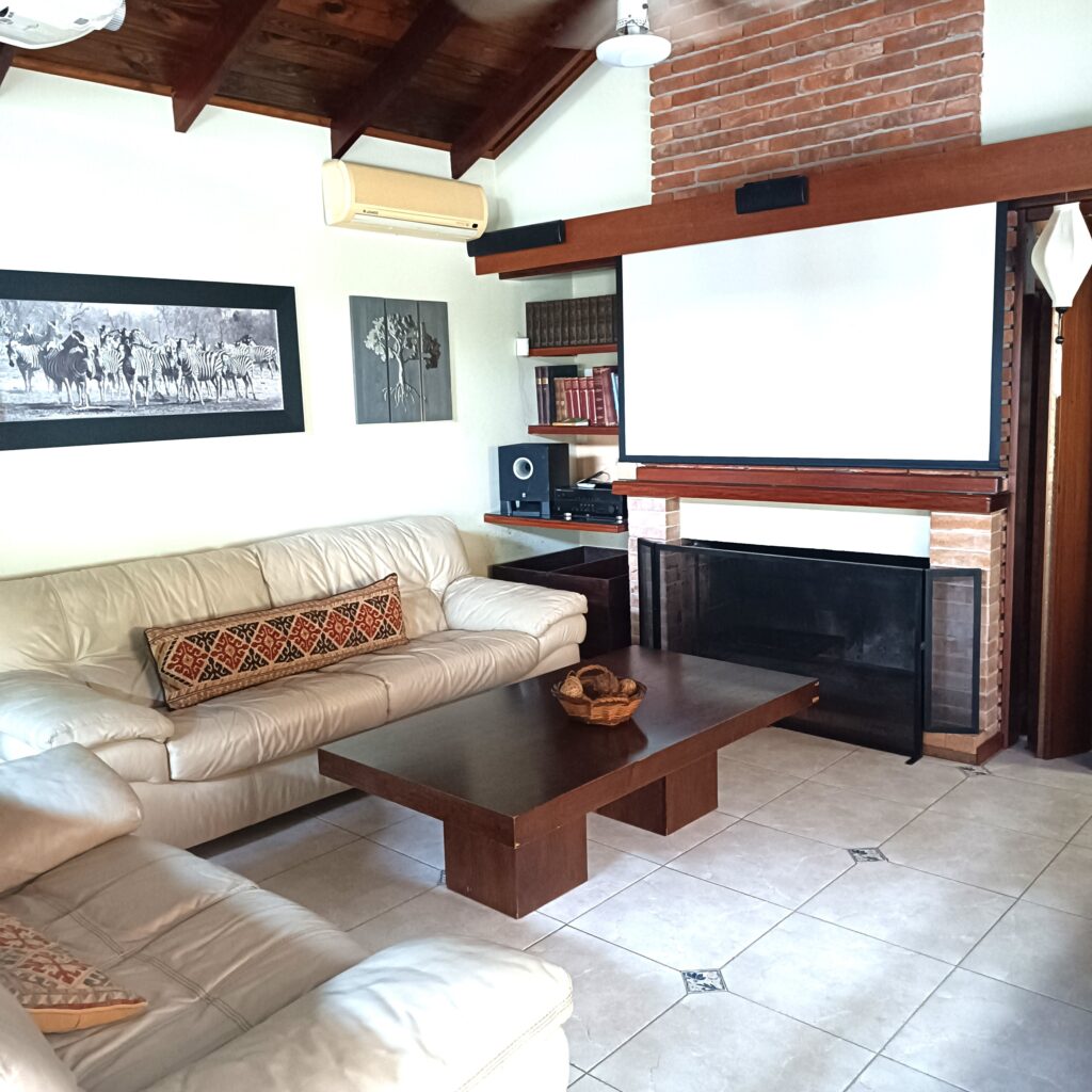Separate kitchen with another living and dining room, also with wood-burning stove. Smart heating system throughout the house. Air conditioning in all rooms. Large built-in closets in the bedrooms. Master bedroom with en-suite bathroom and two large walk-in closets with every detail to keep clothes, shoes, and everything else organized, mirrored doors.